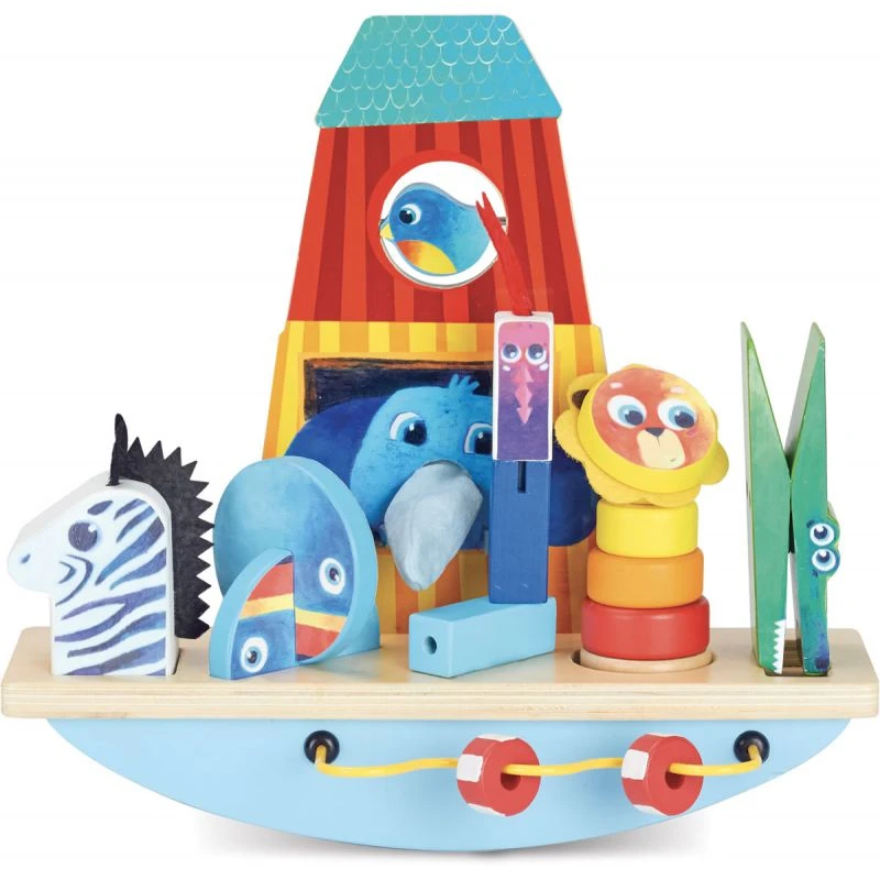L’arche d’éveil multi activité de Vilac est un joli jouet d’éveil en bois sous la forme d’une arche avec des animaux rigolos qui proposent différentes activités Les enfants vont ainsi pouvoir manipuler les pièces qui s’emboîtent, s’empilent, s’insèrent, se déforment, coulissent …. et travailler leur dextérité.Ils pourront aussi mettre un doigt dans la trompe de l’éléphant afin de la faire bouger.