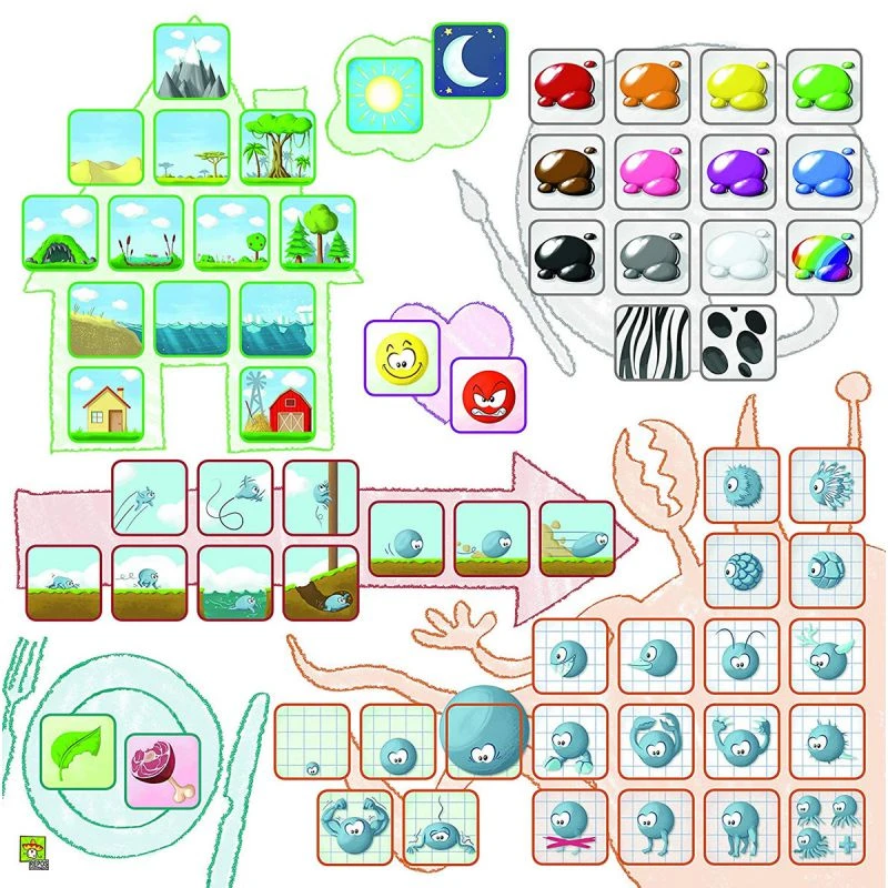 Ce jeu propose 3 variantes et les 110 cartes animaux sont classés en 2 catégories (facile et difficile) permettant ainsi d’adapter le jeu en fonction de l’âge des enfants.