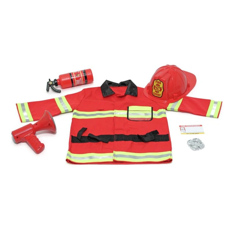 Beaucoup de petits garçons rêvent de devenir pompier. Avec ce costume de pompier Melissa et Doug très complet il pourra se déguiser en pompier héroïque. Il est conçu pour les enfants de 3 à 6 ans et est livré avec la veste rouge, le casque ajustable via une sangle réglable, l’extincteur, un porte voix avec effets sonores et un badge à personnaliser.