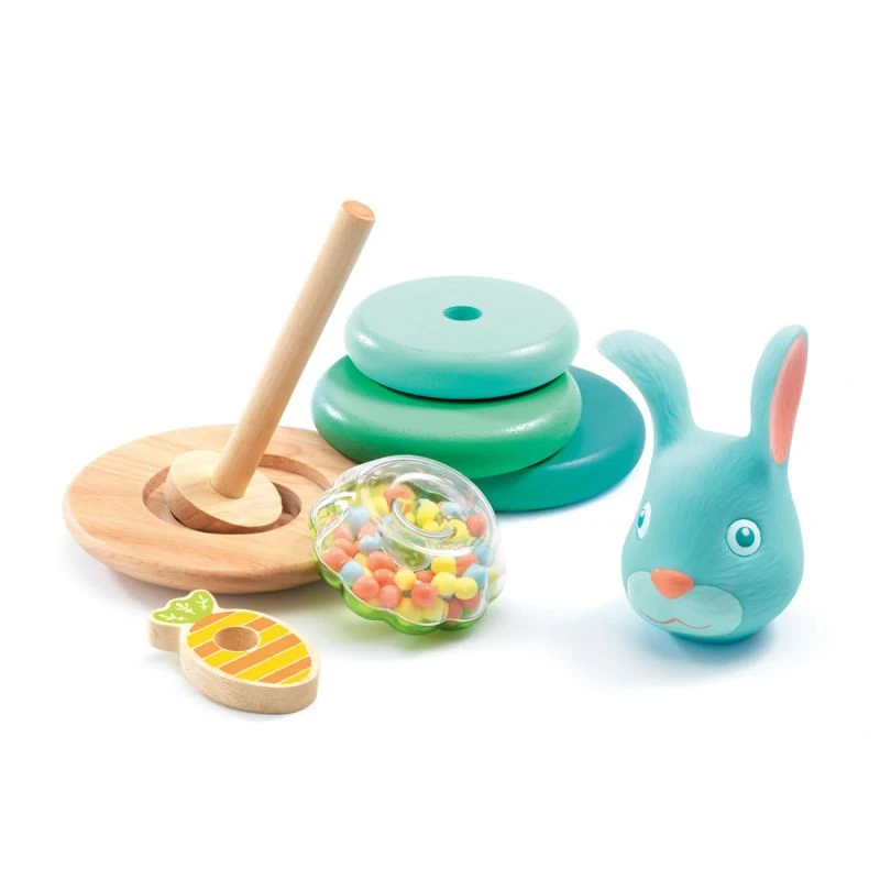 Cascarott est un jouet d’anneaux à empiler sous la forme d’une pyramide surmontée d’un sympathique lapin. Les enfants s’amuseront à reconstituer le lapin en empilant les anneaux dans le bon ordre et en terminant avec la tête de Cascarott.