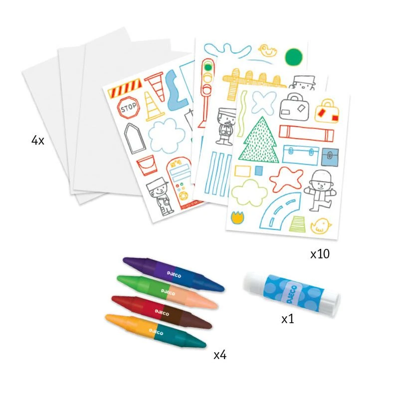 Djeco Un Monde à Créer, Voitures – Pochoirs, Coloriages Et Collages