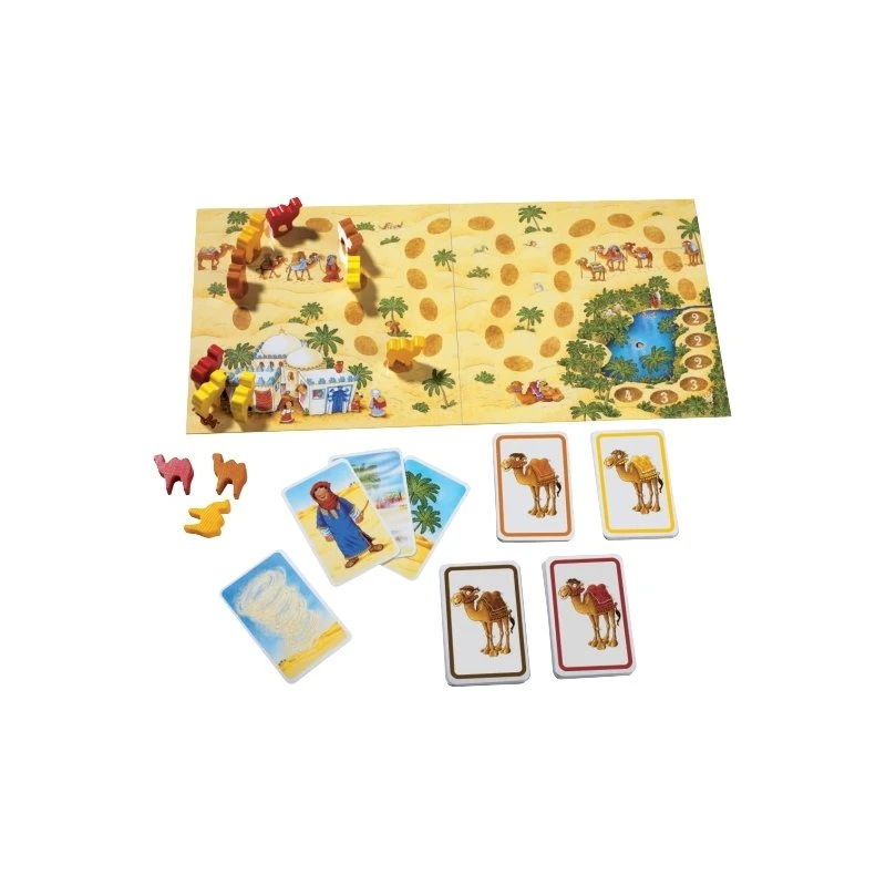 Quels chameliers arriveront les premiers à l’oasis ? Ce jeu de plateau est une course tactique entre joueurs pour faire avancer ses chameaux jusqu’à l’oasis. Mais gare aux tempêtes de sable et aux coups tordus des autres chameliers !