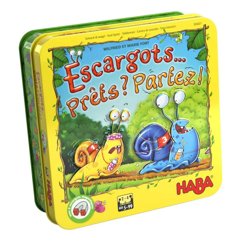 Escargots… Prêts ? Partez ! est un jeu de société rigolo pour jouer en famille à partir de 5 ans. Dans ce jeu de course d’escargots, chaque joueur recevra secrètement une carte de pari lui indiquant les escargots qu’il devra faire gagner. Le but du jeu sera donc de faire arriver en premier les escargots désignés par notre carte sans trop éveiller de soupçons de la part des adversaires.