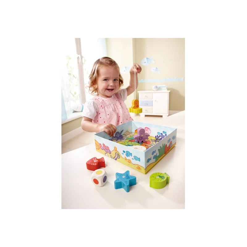 Une pêche à la ligne adapté pour les petits dès 2 ans. Parfait pour s’initier aux jeux avec des règles et pour travailler la motricité fine ce jeu de pêche à la ligne peut se pratiquer seul ou à plusieurs (jusqu’à 4 joueurs).