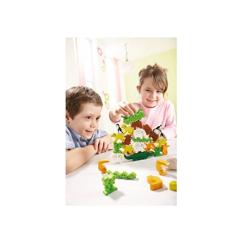 Le but du jeu est d’arriver à se débarrasser de ses animaux en les empilant sur la pyramide. A chaque tour le joueur lance le dé et en fonction du résultat devra soit placer un ou deux animaux, soit un animal désigné par ses adversaires, soit donner un animal à un adversaire.