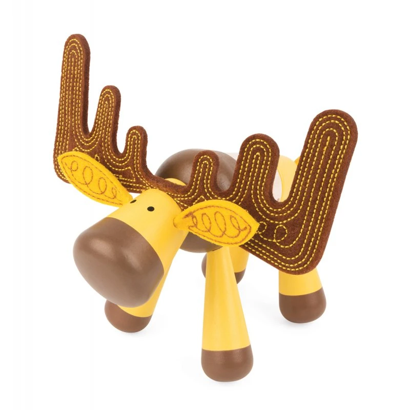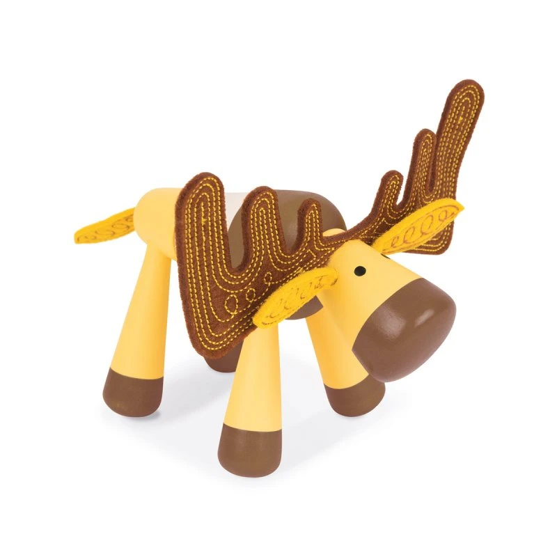 Cet élan est un jouet en bois massif à assembler composé de 4 pièces. Son graphisme original et ses couleurs contrastées en font un jouet attirant pour bébé qui travaillera sa motricité en l’assemblant.