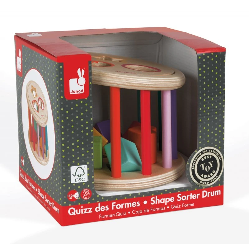Jolie boîte à forme colorée avec 6 cubes à encastrer. Idéal pour apprendre les formes et les couleurs, ce « quizz des formes » se révèle très pratique avec son couvercle magnétique permettant de récupérer facilement les formes sans se coincer les doigts. 3 formes s’encastrent d’un côté et les 3 autres de l’autre côté obligeant ainsi l’enfant à effectuer plus de manipulations.