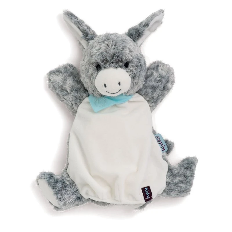 Ce doudou est à l’effigie de Regliss l’ânon de la collection « Les amis » de Kaloo. Revêtu de fourrure et de micro-velours il est extrêmement doux. Sa bonne bouille et son petit bandana lui donne un air très sympathique. Il fait également office de marionnette et permettra à papa et maman de faire des jeux interactifs avec bébé.