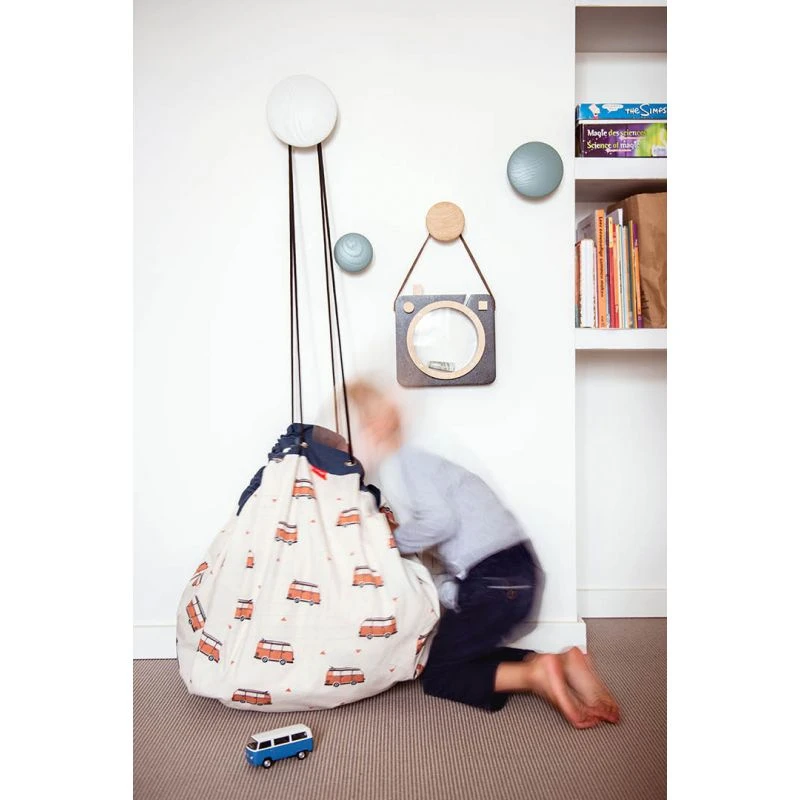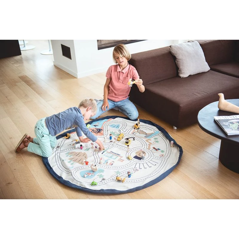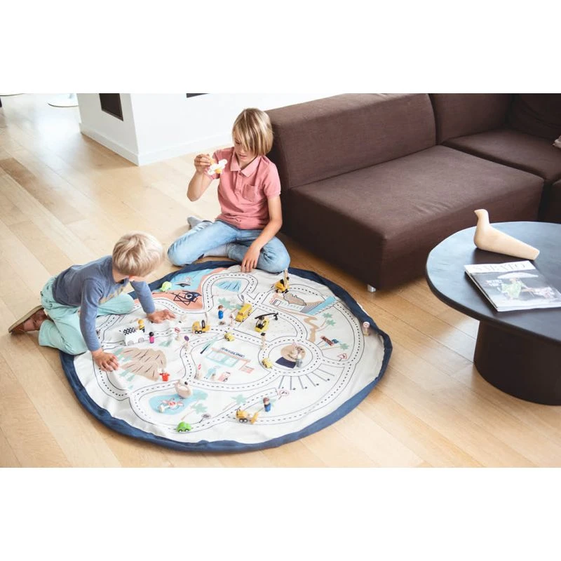 Avec ce tapis de jeu aux illustrations inspirées de la cité des anges, Play and Go propose un tapis aussi joli que pratique. En effet, une fois le jeu terminé, il suffira de tirer sur les ficelles intégrées au tapis pour rassembler tous les jouets et transformer ce tapis en sac de rangement.