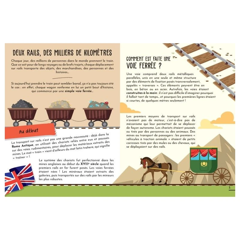 Construis la locomotive 3D est un coffret comprenant un livre et une maquette à construire pour les enfants à partir de 6 ans. Dans le livre de 14 pages, les enfants vont pouvoir découvrir la fabuleuse histoire du chemin de fer, le fonctionnement des trains et l’évolution des différentes technologies. Ils vont aussi trouver des réponses à leurs questions comme par exemple la vitesse à laquelle les trains modernes roulent et apprendre des informations et les termes techniques sur les différentes parties des wagons.