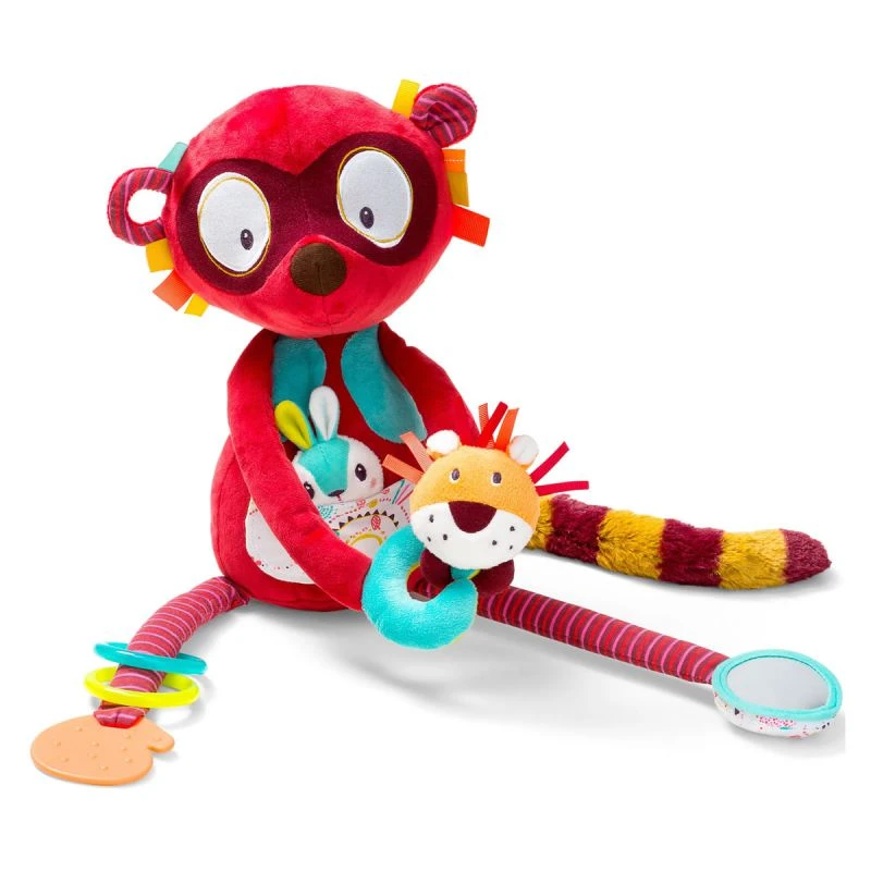 A la fois peluche très câline et jouet d’activité, Georges le lémurien d’activité de Lilliputiens regorge de secrets. Sa queue et ses grandes pattes permettront à bébé de bien l’agripper et d’y découvrir différentes activités comme des anneaux à faire tinter, un miroir dans lequel s’admirer des éléments à mordiller, une patte élastique à allonger, …