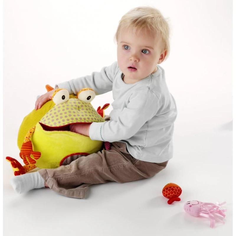 Roméo le crapaud est un jouet d’activités du genre affamé. En effet il passe son temps à gober les 4 hochets que sont le poisson, le crabe, la mouche et la pieuvre. Bébé s’amusera à aller rechercher dans la bouche de Roméo ces 4 hochets de textures différentes. Pour distraire bébé Roméo a également les pattes qui bruissent, tintent et croassent.