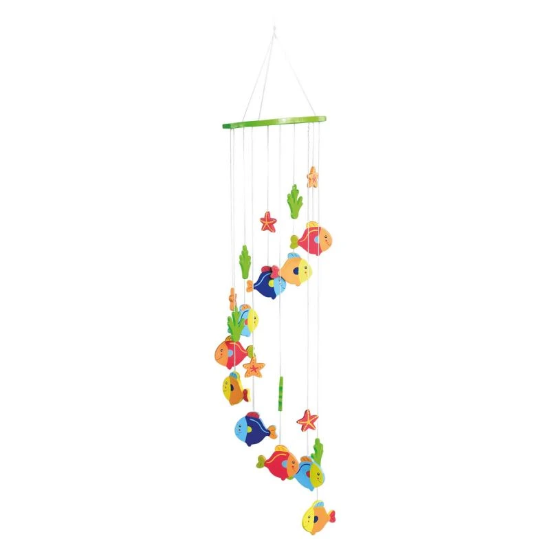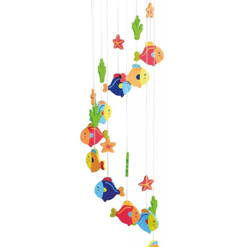 Un mobile composé de nombreux poissons colorés qui captivera bébé. Le spectacle des petits poissons, des étoiles et des algues apaisera bébé avant de s’endormir.