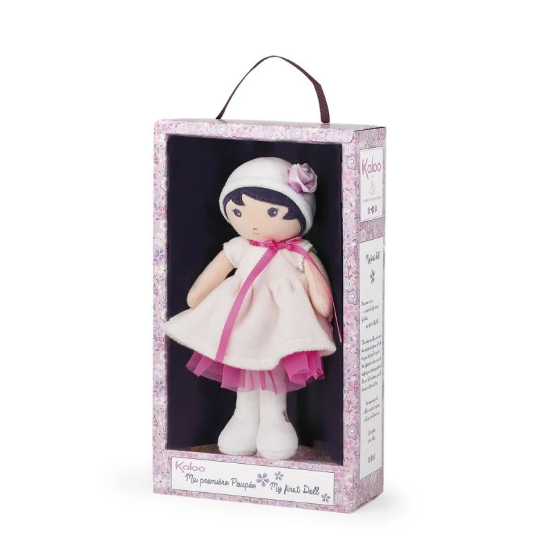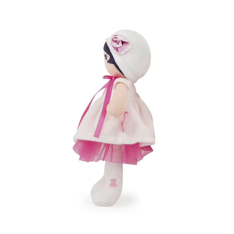 Perle est une attendrissante poupée chiffon de la collection tendresse de Kaloo. Tout en délicatesse, cette charmante poupée saura charmer les petites filles avec ses habits blancs et son jolie jupon en tulle rose. Sa jolie fleur sur son chapeau et son long ruban rose finissent de lui donner un air unique et délicat.