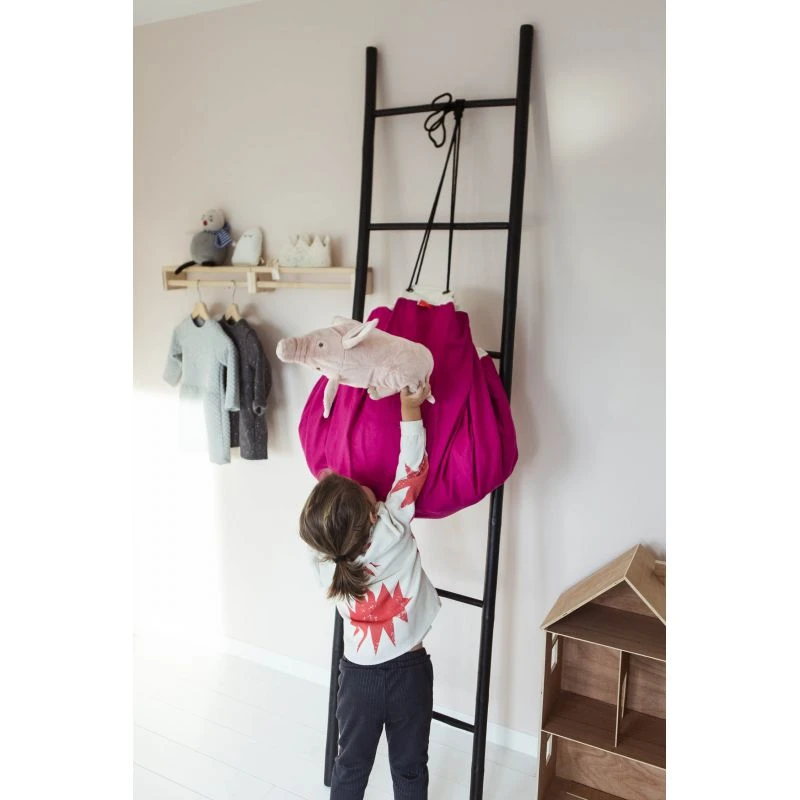 Découvrez le sac à jouets 2 en 1 play and go fuchsia. Ce sac de rangement à la couleur flashy mettra de la gaieté dans la chambre de votre enfant. Très astucieux,:il se transforme en un clin d’oeil en un grand tapis de jeu de 140 cm de diamètre. Et une fois le jeu terminé, il suffit de tirer sur la ficelle pour que tous les jouets se retrouvent emprisonné dans le sac.
