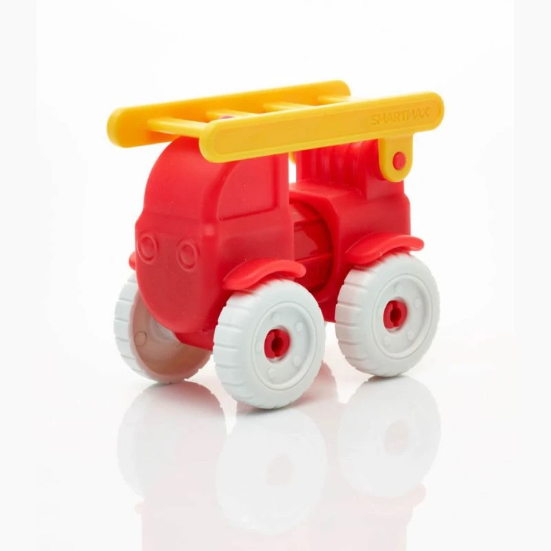Découvrez Mes premiers véhicules de Smartmax, un coffret de 13 grosses pièces sur le thème des véhicules de chantier. Le jeux comprend 4 camions composés chacun de 3 pièces ainsi qu’une boule magnétique. Les différentes pièces sont interchangeables entre les véhicules. L’enfant peut ainsi jouer avec les véhicules de chantier ou s’amuser à les démonter et les recomposer.