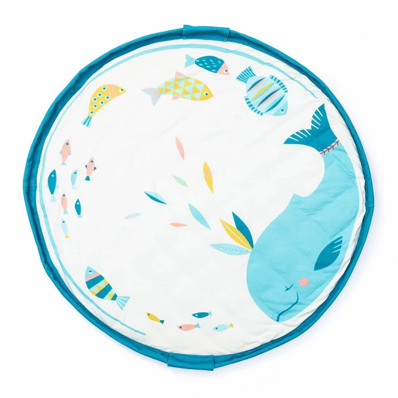 Créé en collaboration avec la célèbre marque française Moulin Roty ce joli tapis d’éveil présente côté face la baleine Olga et une myriade de petits poissons colorés aux jolis motifs. Les couleurs sont douces et l’ensemble très harmonieux. Côté pile le sac est orné de plumes délicatement colorées.