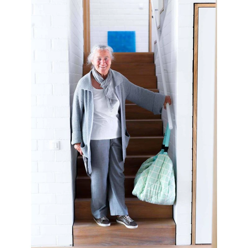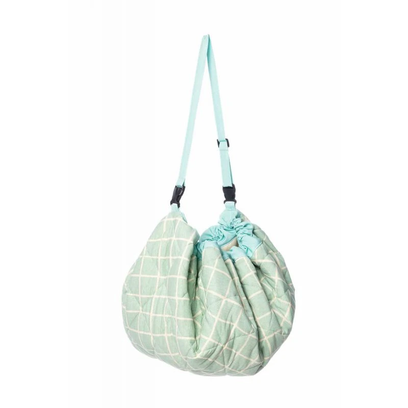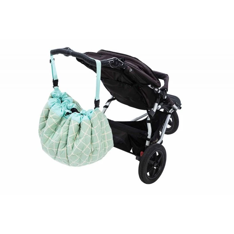 Le tapis sac est livré avec une bretelle réglable à clipser sur le sac pour le transporter facilement sur l’épaule ou sur une poussette.