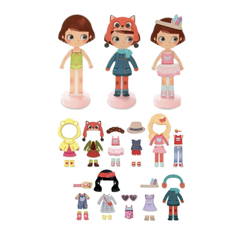 Comme beaucoup de petite fille Chloé est coquette et son dressing est bien garni. Comment va t elle s’habiller ce matin ? Quelle activité va t elle faire aujourd’hui ? A toi d’inventer la vie de Chloé et de l’habiller en conséquences à l’aide des 37 vêtements et accessoires magnétiques.